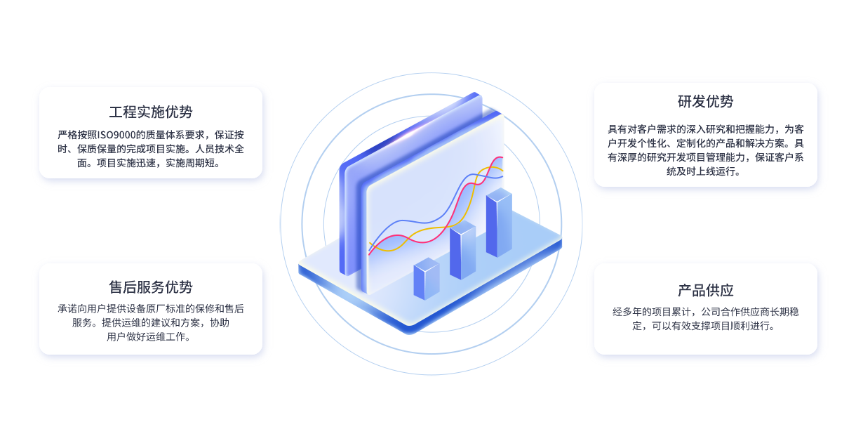 集成服務:主要服務范圍包括綜合布線、網絡安全、數據安全、可視化智能管理、機房智能化建設、安防監控、設備安裝調試、頁面定制開發和應用支持。