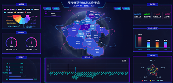 2019年職稱信息管理平臺系統在河南省上線,系統在全省范圍內應用。截止目前系統共創建單位賬戶8萬余個,各級管理人員賬戶近20萬個,個人申報賬戶120余萬個,共有上百萬人次申報職稱,其中80余萬人通過平臺申報取得相應職稱資格。全省有800多個高、中級職稱評委會使用職稱管理服務平臺進行評審,并在系統中生成證書編號,制發文件,打印紙質證書和生成電子證書,目前所有高、中、初級證書均在系統打印完成并發放個人。